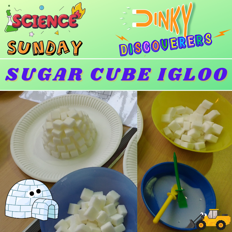 Inspired by our week exploring the topic of winter, we are constructing igloos! All you need is a paper plate, sugar cubes and PVA glue!